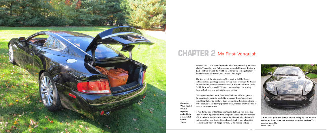 This book follows Joe Limongelli’s experiences as an enthusiast and owner of several notable Aston Martin cars, detailing the finer points of purchase, care and maintenance of a specialty vehicle and culminating in a remarkable adventure – a journey across the United States in a 2004 Aston Martin Vanquish. A road trip unparalleled, in a car equally as unique.