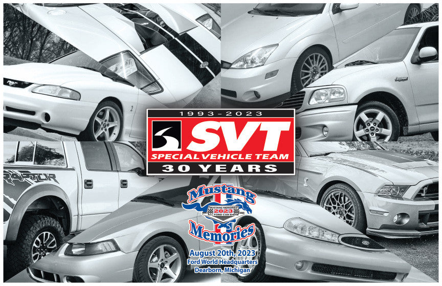 Commemorative poster available only at the 'Mustang Memories' car show, in celebration of 30 Years of SVT in Dearborn, Michigan August 20, 2023