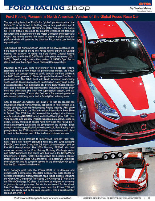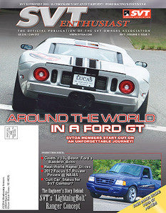 Winter 2011 issue of the SVTOA's official member magazine! This issue features the story of a trek by SVTOA members "Around the World in a Ford GT" as well as feature articles for all other SVT fans!