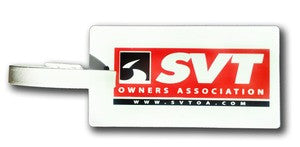 Hard plastic luggage tag with SVTOA logo and removable ID card.